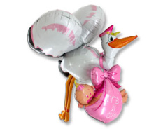 G Шар 3D (62"/157 см) Фигура, Аист с малышом, Девочка, 1 шт. в уп.