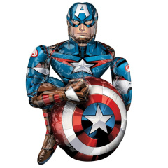 Фольгированный шар внушительных размеров в виде фигуры одного из Мстителей - Капитан Америка. Как правило, ходячие фигуры наполняются гелием, но некоторые модели возможно надувать воздухом. В нижней части крепятся небольшие грузики, которые не дают шарам взлететь, но и не мешают свободно перемещаться от легкого дуновения ветра. Данный шар можно надуть ВОЗДУХОМ. Конструкция шара и грузики, прикрепленные к нижней части фигуры, обеспечивают ей устойчивое положение. Имеет встроенный клапан - что упрощает надувание. Тонкая миларовая (фольга на полиэтиленовой основе) пленка позволяет шарам не сдуваться от недели до одного месяца. Упакован в красочный пакет, с цветным изображением шара, что позволяет выставлять товар в не надутом виде.