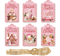 Бирки для подарков, Merry Christmas, Розовый, 60 шт,